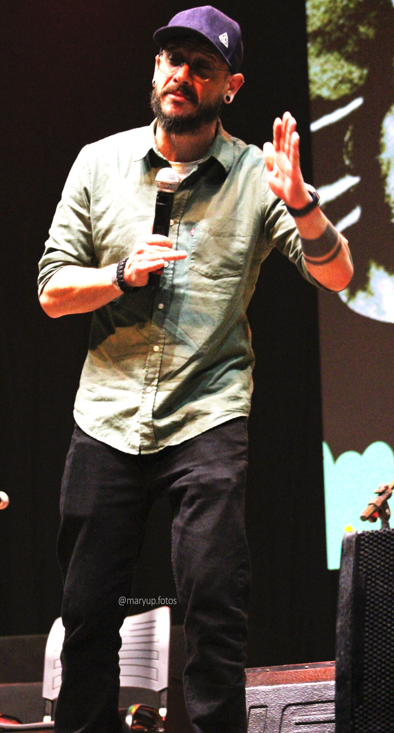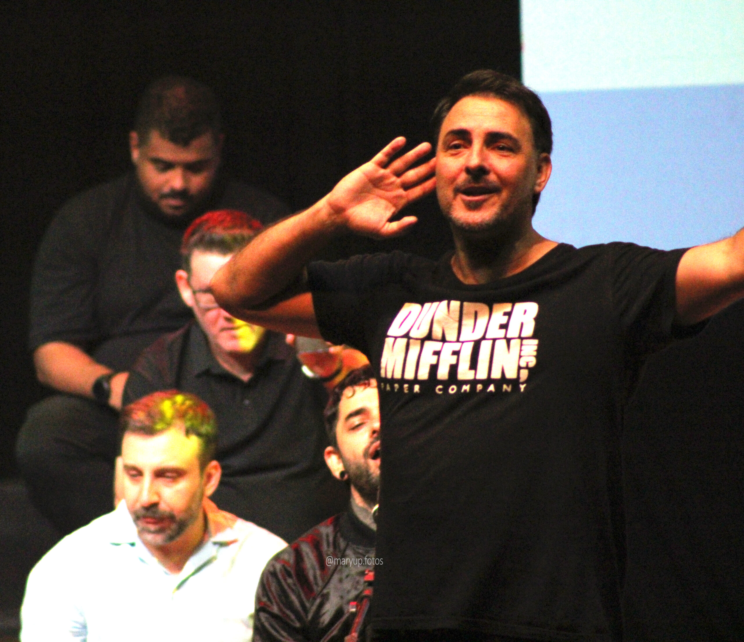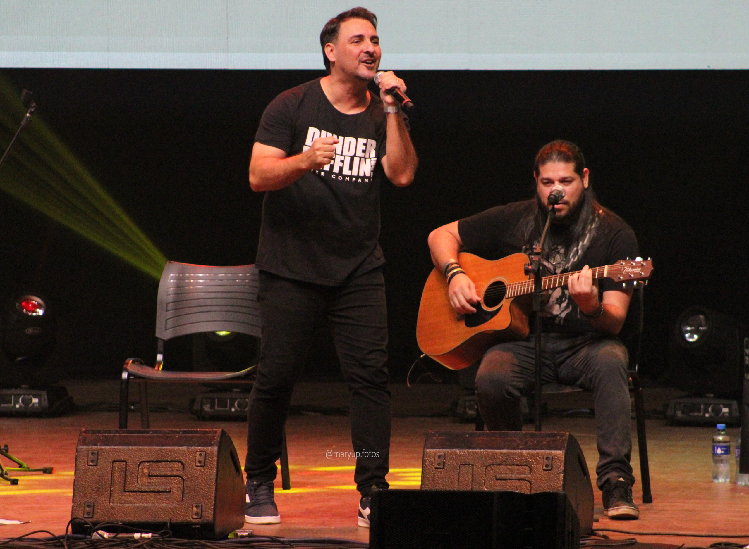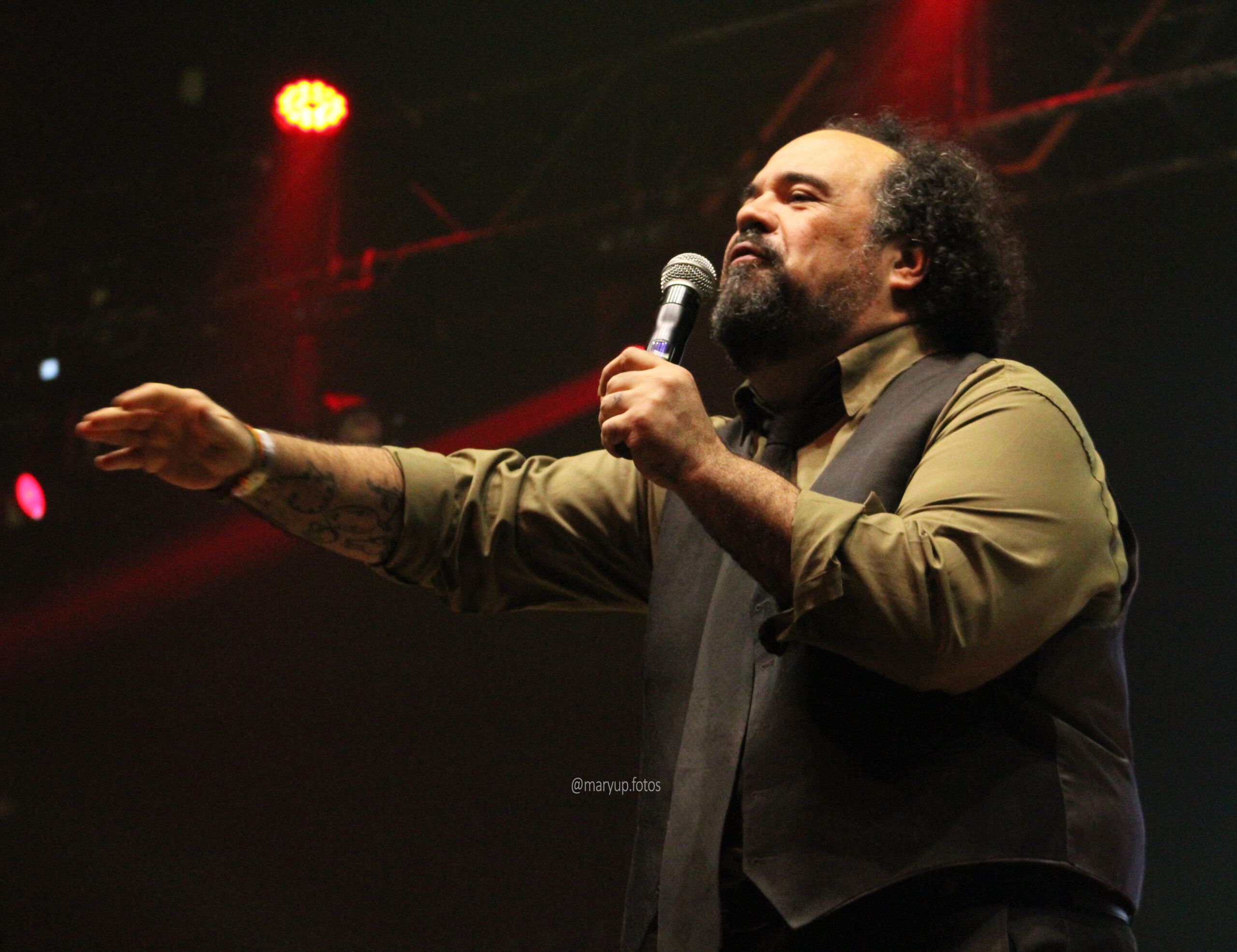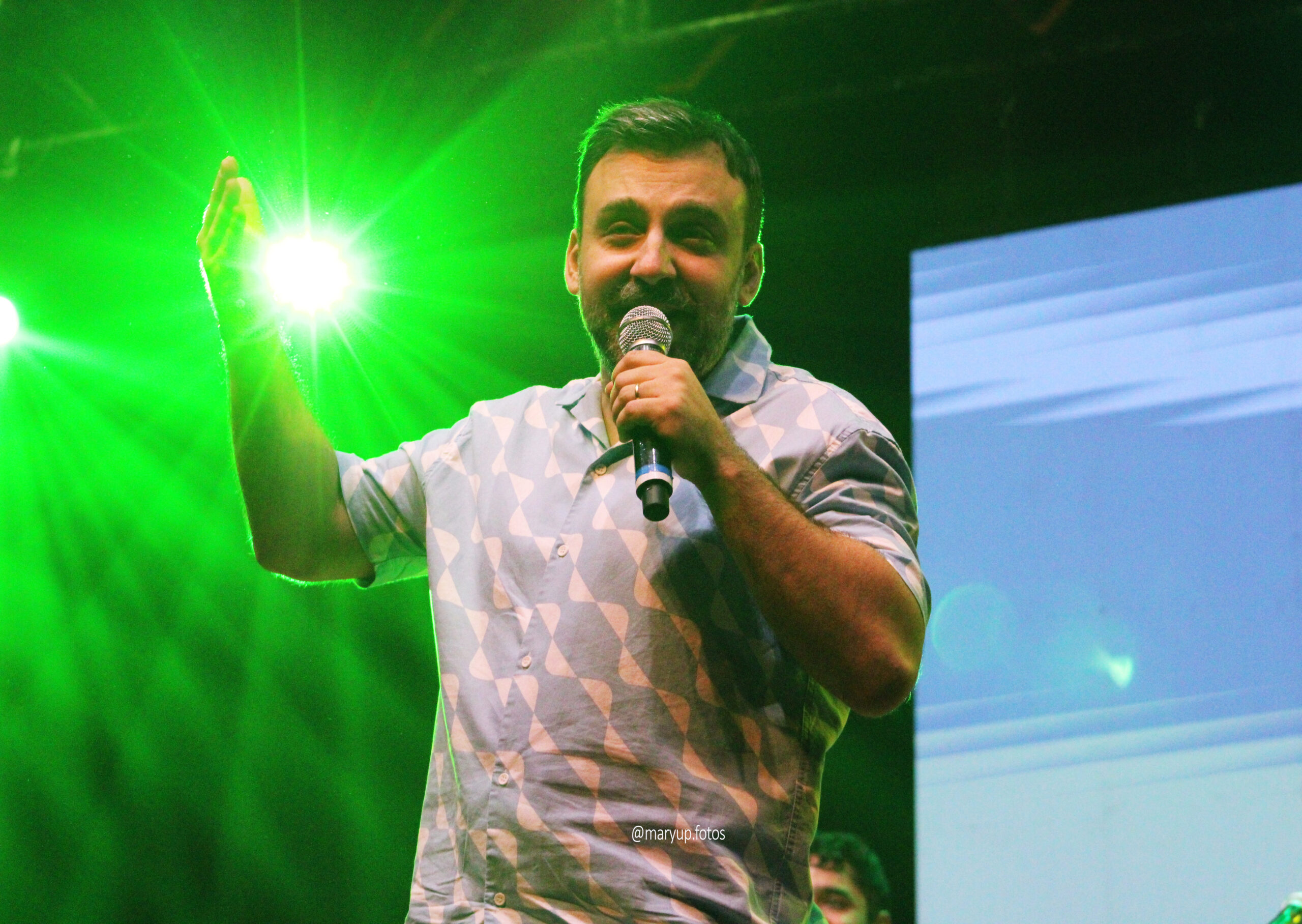 Com o local completamente lotado, era por volta das 20h quando a primeira atração sobe ao palco, o comediante Marcito Castro. Foi um show curto, de apenas dez minutos, mas o suficiente para arrancar risadas de todos os presentes. O artista, que também teve sua família atingida pela tragédia, é extremamente talentoso e encerrou sob intensos aplausos.