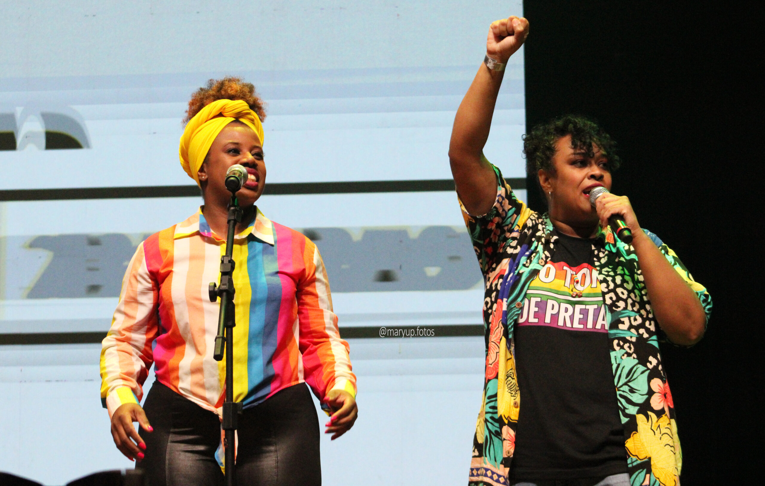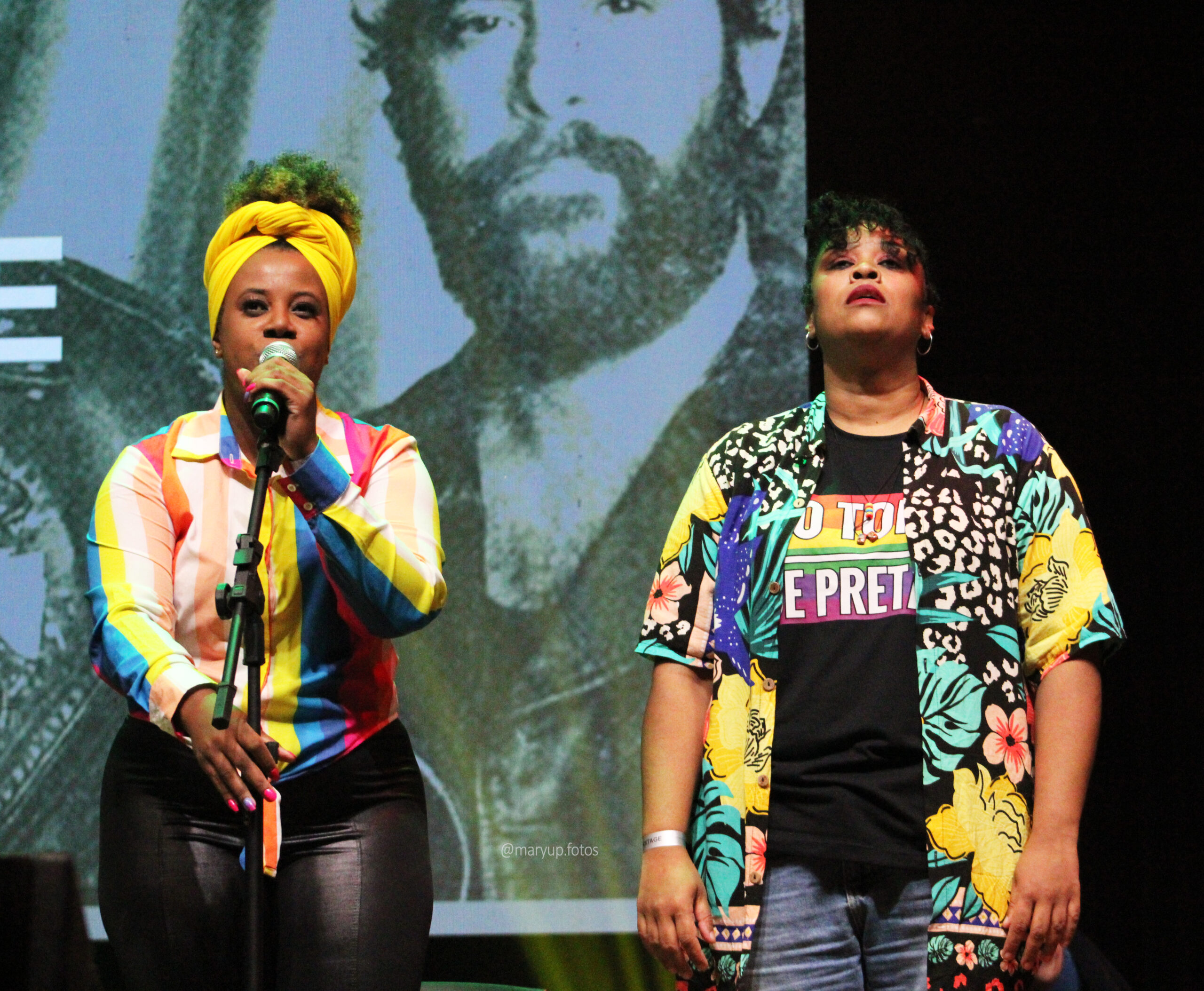 Lucas anuncia que, além de grandes nomes, eles também acreditam que deveria usar esse evento para dar mais visibilidade aos novos artistas. É o caso da próxima atração, 50 Tons de Pretas. E que grata surpresa! Dejeane Arruee e Graziela Pires chegaram com tudo, com a grande e forte canção “Cota não é Esmola”. Em seguida vem a linda “Oracíon”, com participação especial de Alexsandra Amaral e Neuro Júnior. Vale muito a pena conhecer mais o trabalho da 50 Tons de Pretas.