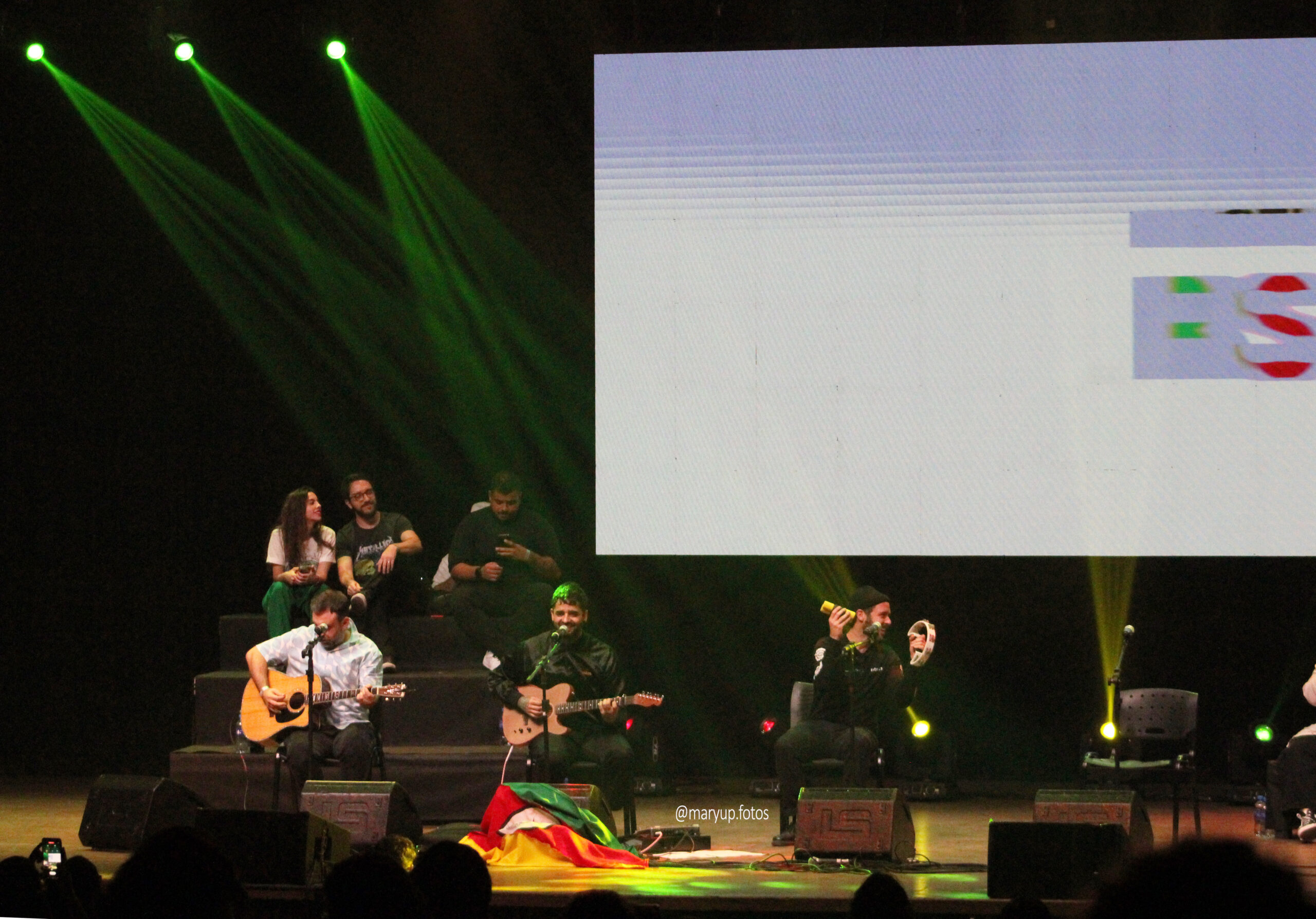 Eis que os donos da noite chegam, já com alguns de seus convidados. O trio da banda Fresno deveria fazer um show solo neste data, para divulgar o recém lançado disco “Eu Nunca Fui Embora”. Mas, demonstrando muita empatia e solidariedade, resolveu adiar sua noite solo para reunir uma seleção de craques com o intuito de ajudar o próximo. Os guris começam a parte musical com duas músicas do seu set, “Redenção” e “Porto Alegre”, extremamente apropriadas e representativas para iniciar essa noite.